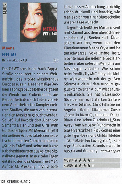 Hier ein CD-Review der aktuellen Meena LP von Harald Keppler im Stereo Magazin. Die Platte wurde bei uns im Tonstudio aufgenommen, gemixt und gemastert.